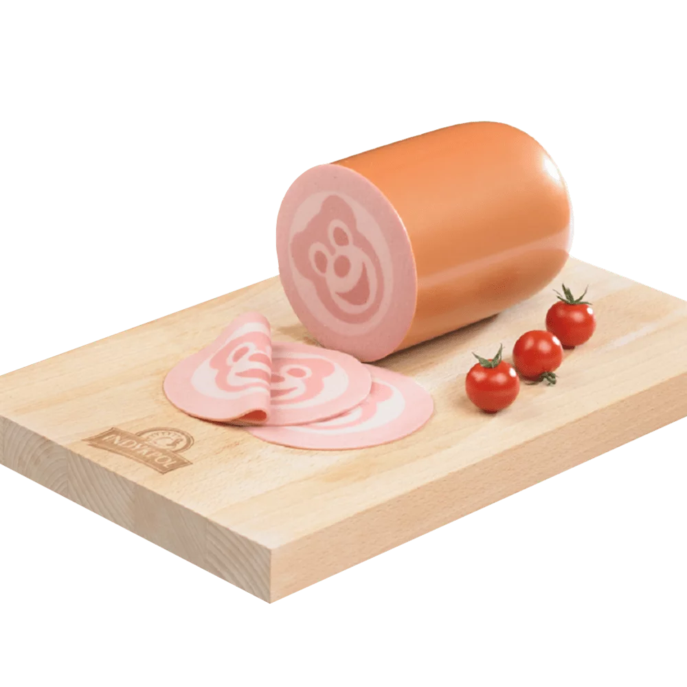 Składniki: mięso indycze 44%, mięso wieprzowe 35%, woda, jodowana sól spożywcza, przyprawy,ekstrakty przypraw, karmel, dekstroza, barwnik: koszenila, stabilizatory E450, przeciwutleniacz: kwas askorbinowy, regulator kwasowości: mleczan potasu, substancja konserwująca:azotyn sodu.
